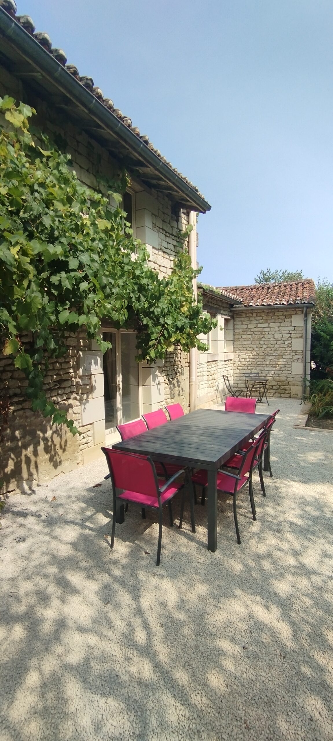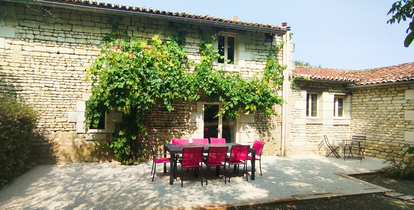 L’ensemble est agrémenté d’une terrasse privative donnant sur le verger, avec salon de jardin, transats  et barbecue.