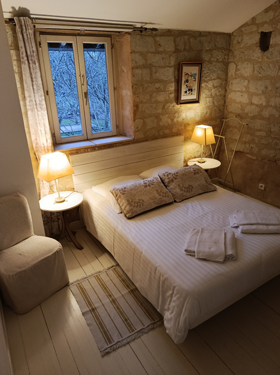 • 1 chambre avec 1 lit double & salle de bain avec douche et WC privative