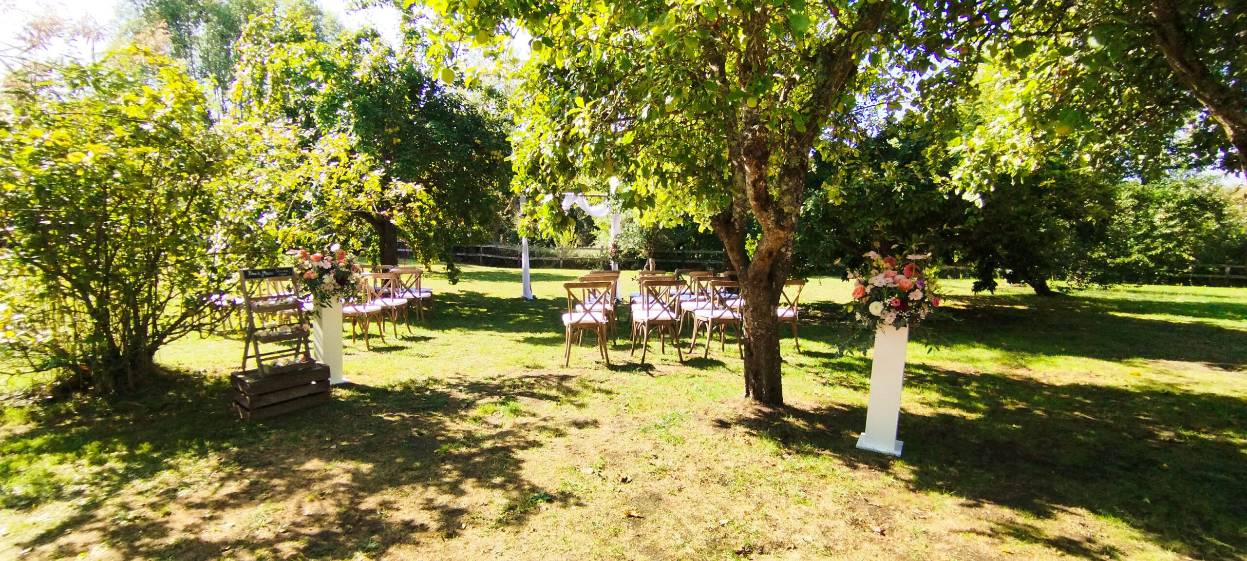 C’est ici que vous pourrez échanger vos vœux lors d’une cérémonie laïque sous les arbres, partager un vin d’honneur à l’ombre des feuillages, ou capturer de magnifiques souvenirs lors de vos séances photos au coucher du soleil.