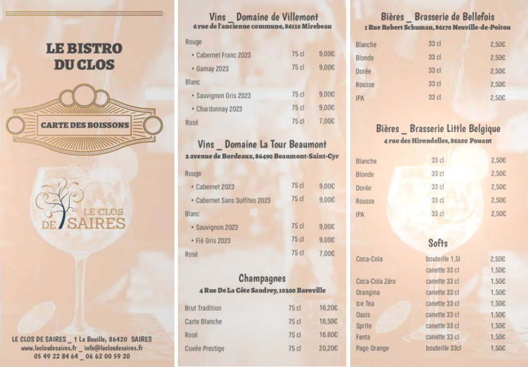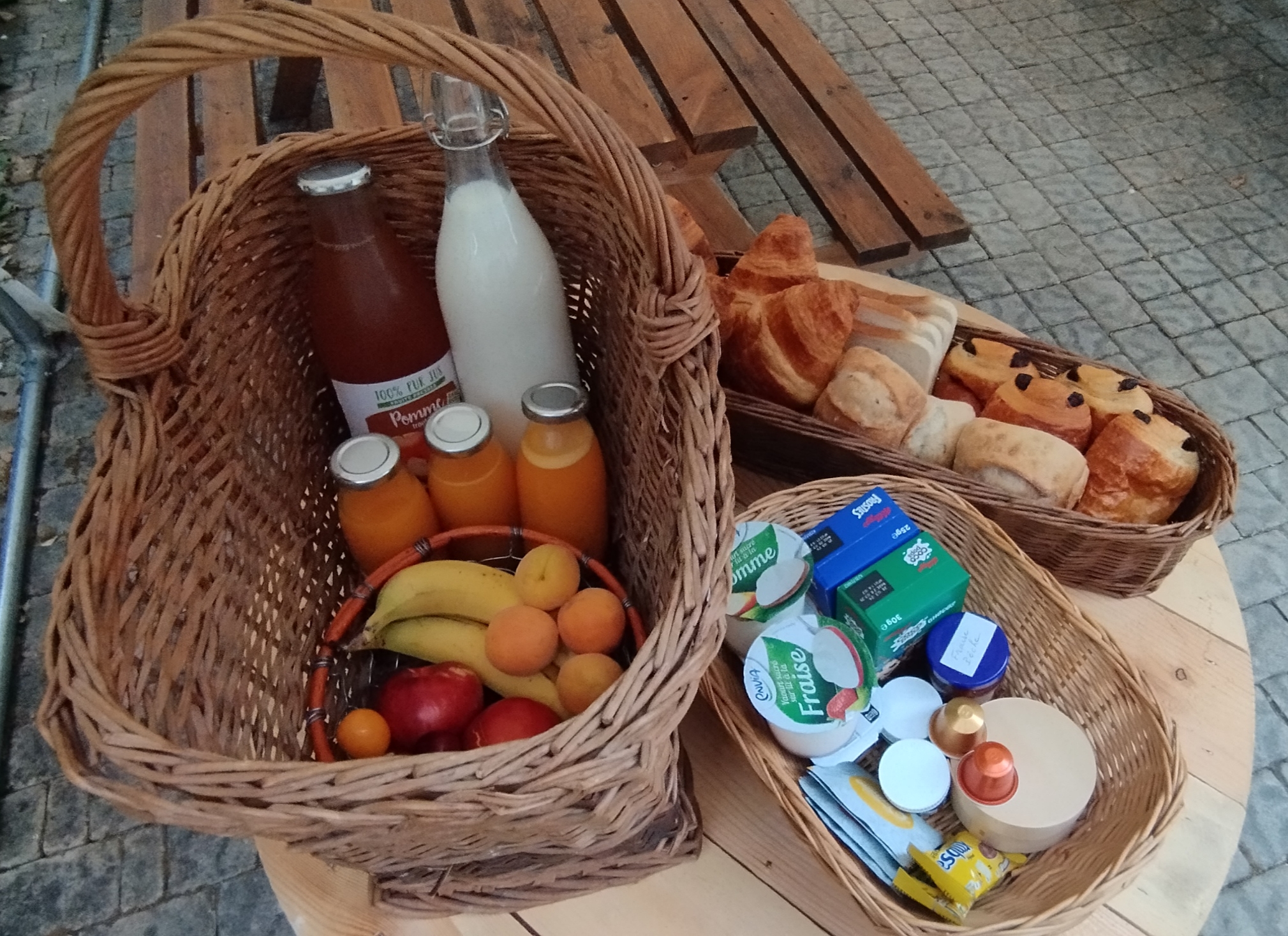 petits-déjeuners, planche gourmande de terrines, raclette party conviviale ainsi qu’une sélection de boissons locales issues de notre cave